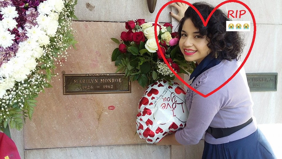 | Karen visiting the grave of her idol, Marilyn Monroe |